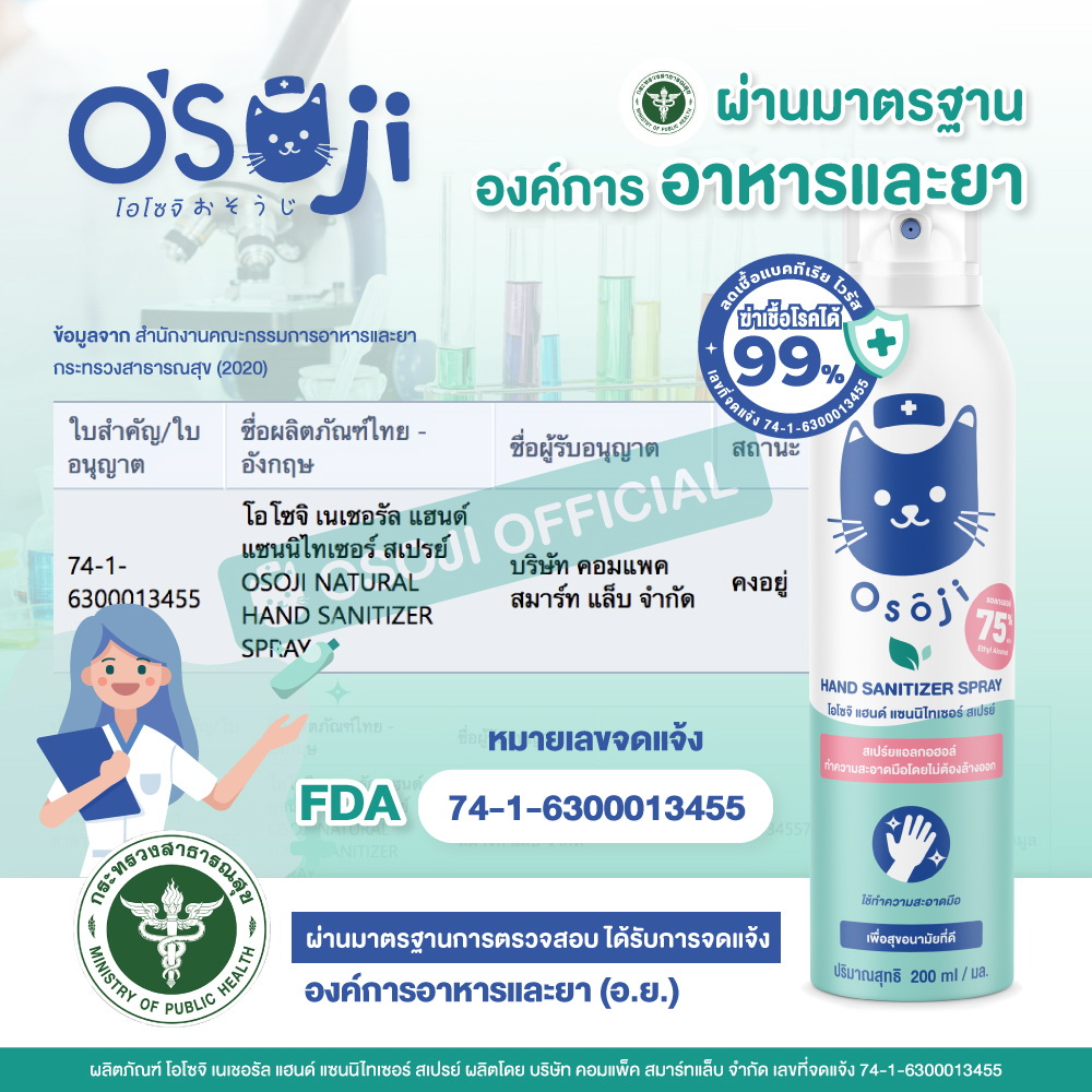 OSOJI THAILAND ได้รับเลขที่จดแจ้งอย่างถูกต้องจาก ทางองค์การอาหารและยาพร้อมทั้งยังได้รับอนุมัติและตรวจสอบสถาณที่ผลิตว่าได้ผ่านเกณฑ์มาตรฐานจาก องค์การอาหารและยาอีกด้วย
